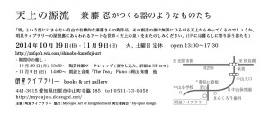 2014年10月19日(日) – 11月9日(日) 火、土曜日 定休 open 13:00~17:30