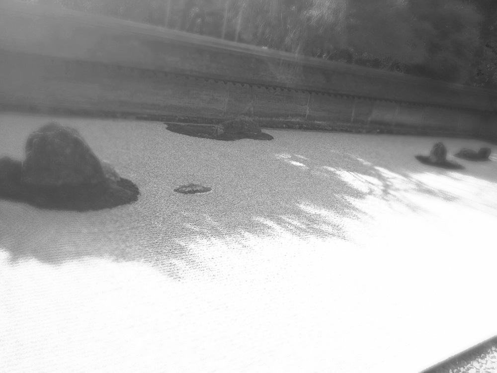 そして、お目当ての龍安寺へ。座り、庭と過ぎ行く雲を眺め、心の静けさを探すひととき。